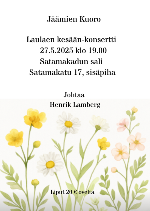 Kuoroon otetaan uusia laulajia. Tule tutustumaan sitoumuksetta, toivotamme kiinnostuneet tervetulleiksi. Harjoitukset ovat tiistaisin osoitteessa Koivistontie 46 klo 18.00-20.30. Ota yhteyttä kuoron sihteeriin tai laita sähköpostia jaamienkuoro@gamil.com. Tervetuloa mukaan!